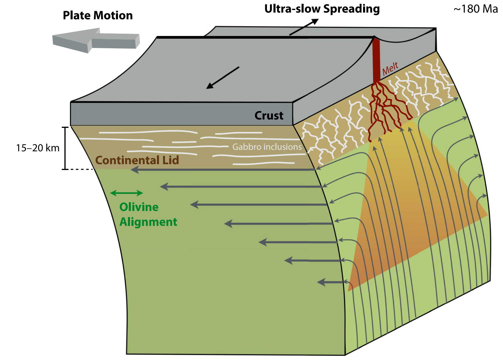 Continental breakup leads to the formation of spreading centers, which are the factories that generate new oceanic lithosphere, are key contributors to the release of heat and volatiles from the planet’s interior, and are drivers of plate tectonics. Yet, questions remain regarding the fundamental rift-to-drift process, modes of mantle deformation in extensional settings, crustal accretion processes, and extent and degree of melting. Oceanic lithosphere provides a window into mid-ocean ridge processes via structures preserved within it.